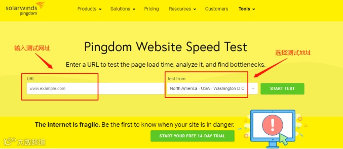 卖家在使用Solarwinds时,不需要过多繁琐操作,只需要在URL框输入测试网站地址,选对受众的地区(可挑选测试不同地域),就可以进行测试,便于卖家使用操作。