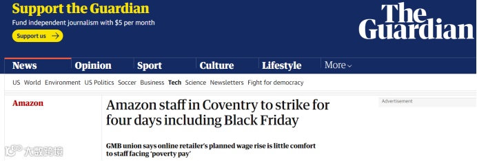 考文垂对于亚马逊网络来说分外重要,如果黑色星期五期间罢工,恐将波及整个公司在英国的物流。