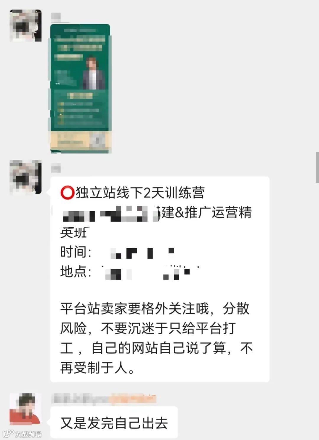 广州某培训公司频繁地在跨境电商行业媒体小 c 创建的跨境电商交流群中不定时发营销广告,有时发送的是带他们二维码的课程海报,有时会配上营销语,发完广告就自动退群。