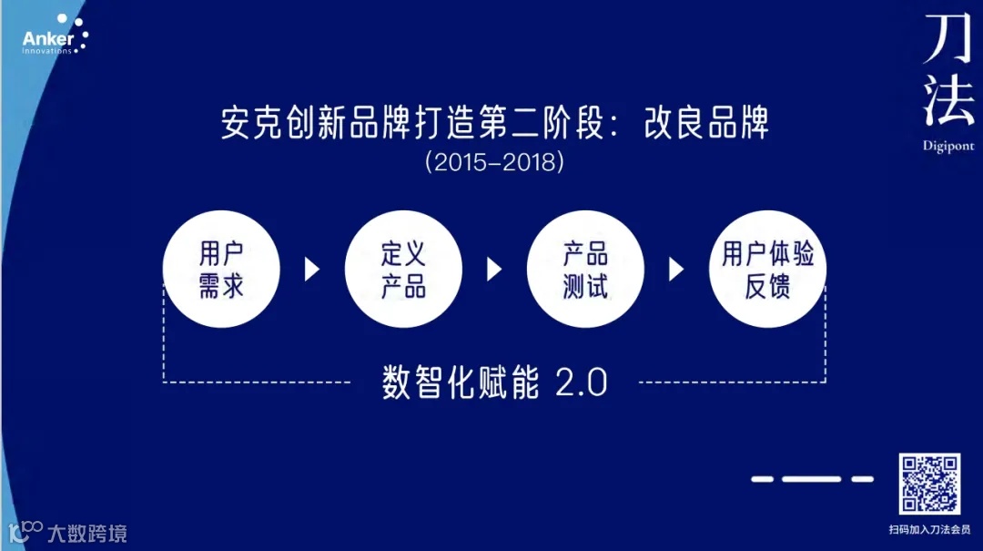 加大研发投入,延长价值链条,强化用户需求洞察与产品体验优化[k]。代表技术如PowerIQ芯片,解决苹果与安卓设备充电协议不兼容问题[k]。典型案例为“拉车线”——采用防弹衣纤维材料,经上万次弯折测试,凭借网红极端测试视频(两车拉拽未断)引爆全球社交传播[k]。品牌观升级为“产品的流量池”,通过产品创新与营销组合积累用户资产[k]。数智化进入2.0阶段,构建模块化数据系统支持复杂业务[k]。