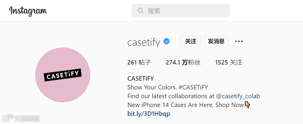 CASETiFY在Instagram上有多个账号,包括主账号和针对香港、美国、澳大利亚等市场创建的单独账号,仅主账号就有270万粉丝。