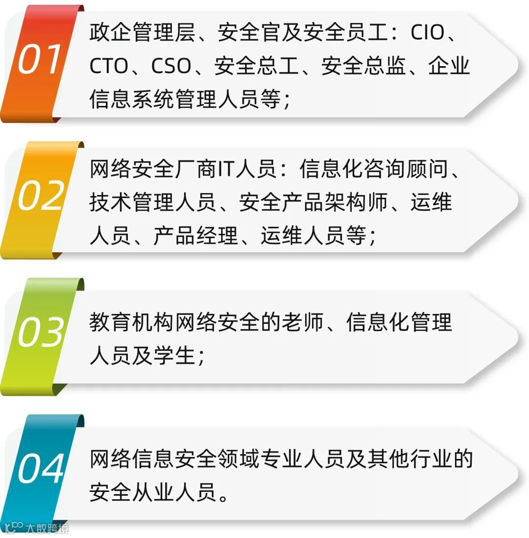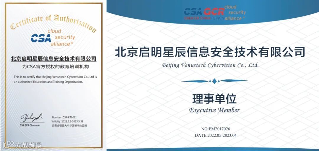 CCSK由CSA国际云安全联盟认证,启明星辰集团作为信息安全行业领军企业,也是CSA国际云安全联盟理事单位。拥有CSA全课程认证授权:包含CCSK云安全/CDSP数据安全/CZTP零信任等。也是启明星辰在安全研究、前沿分析和教研开发等方面实力的体现。