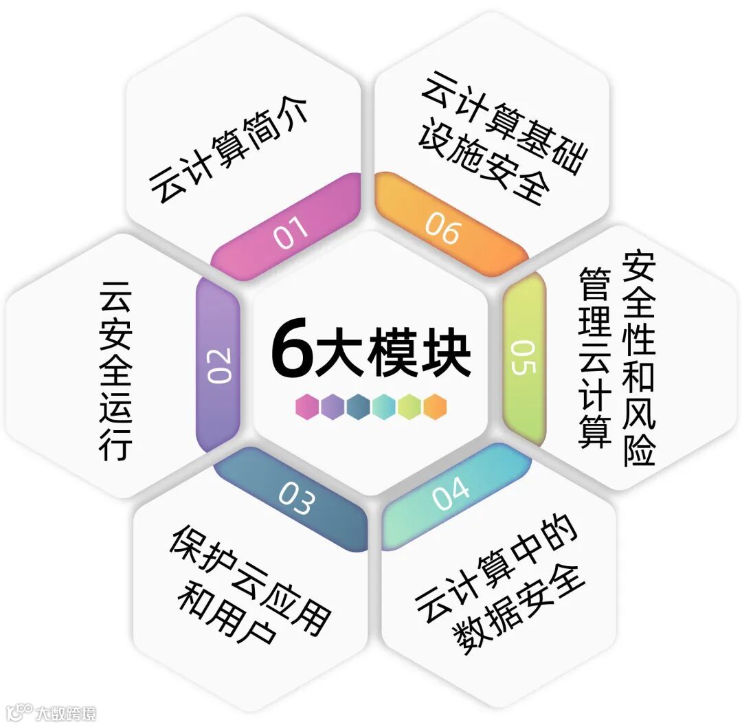本课程分为6个模块,涵盖CSA指导的14个领域和ENISA云计算:信息安全的利益、风险 和建议。