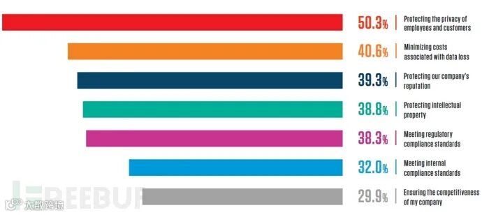 许多DLP项目最初是为了响应法律法规而启动的。但据受访者称,监管和合规不再是主要驱动力。随着这些举措的成熟,重点似乎正在转向保护客户和员工的隐私,超过50%的受访者将这些视为其DLP计划的主要推动力。虽然其中一些无疑与地方和国际层面出台的新隐私法规有关,但人们似乎真的希望做得更多,而不仅仅是遵守法律规定的最低限度。