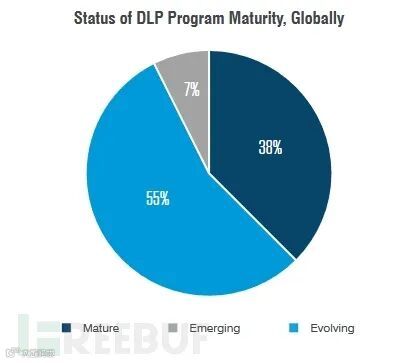 【全球DLP程序成熟度现状。38%处于「成熟」状态,55%处于「演进」状态,7%处于「新兴」状态】