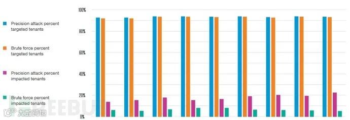 来自Proofpoint平台的威胁数据证实了云租户面临的风险。在2023年1月至9月期间,96%的受监控云租户成为暴力破解攻击的目标。在暴力破解攻击中,威胁参与者试图通过猜测密码或其他自动化手段获得访问权限。更令人担忧的是,在同一时期,96%的租户遭受了精确攻击,比如有针对性的网络钓鱼攻击。这些更复杂的攻击中有许多是成功的,54%的租户至少被入侵一次,相比之下,只有20%的租户被暴力破解成功入侵。