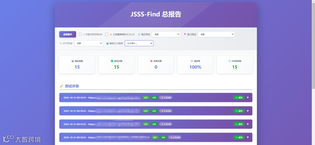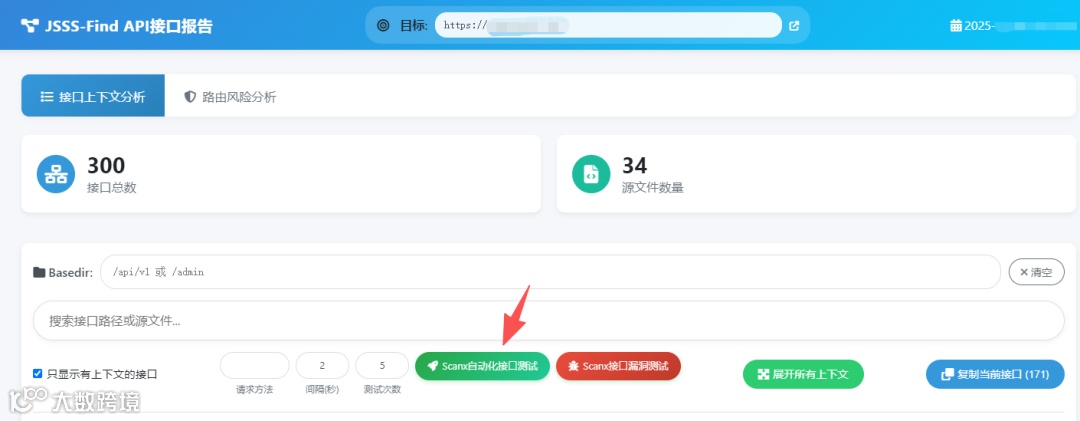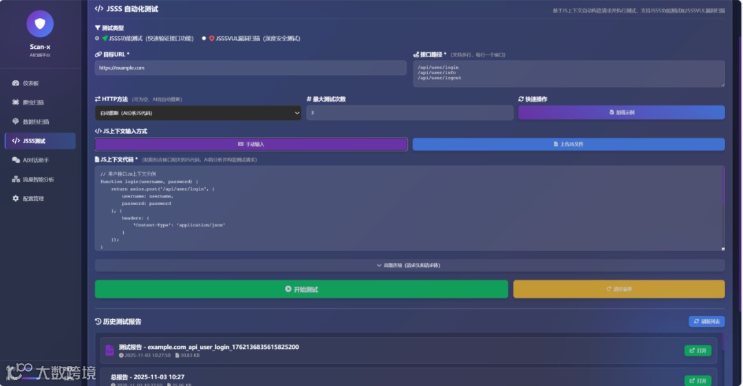 深度集成 JSSS-Find 与 Scan-X,操作被简化为“扫描 - 勾选 - 点击”,系统自动完成后续所有测试与分析。