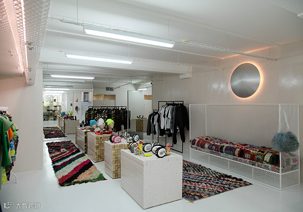 店铺外观朴素,绿藤缠绕如民居,内部却由美国艺术家Kris Ruhs操刀设计,融合工业风与艺术感。店内汇聚Maison Martin Margiela、Comme des Garcons、Fendi等极具设计感的品牌,涵盖时尚、生活方式、音乐与饮食多个领域[k]。