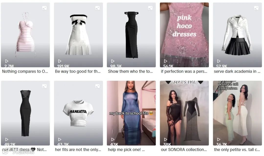 TOP FAVOR 并非个例,在海外也有不少实践者,如今天要展开讲的品牌 FINESSE 就是其中之一。这家成立于2018年的美国本土的女装时尚品牌,以“AI 设计”、“全尺码”和“环保可持续”为品牌特色,并通过前卫个性的产品风格在社交媒体上已经收获上百万粉丝,在 TikTok 上也已累计播放量超过千万,可见其受欢迎程度。