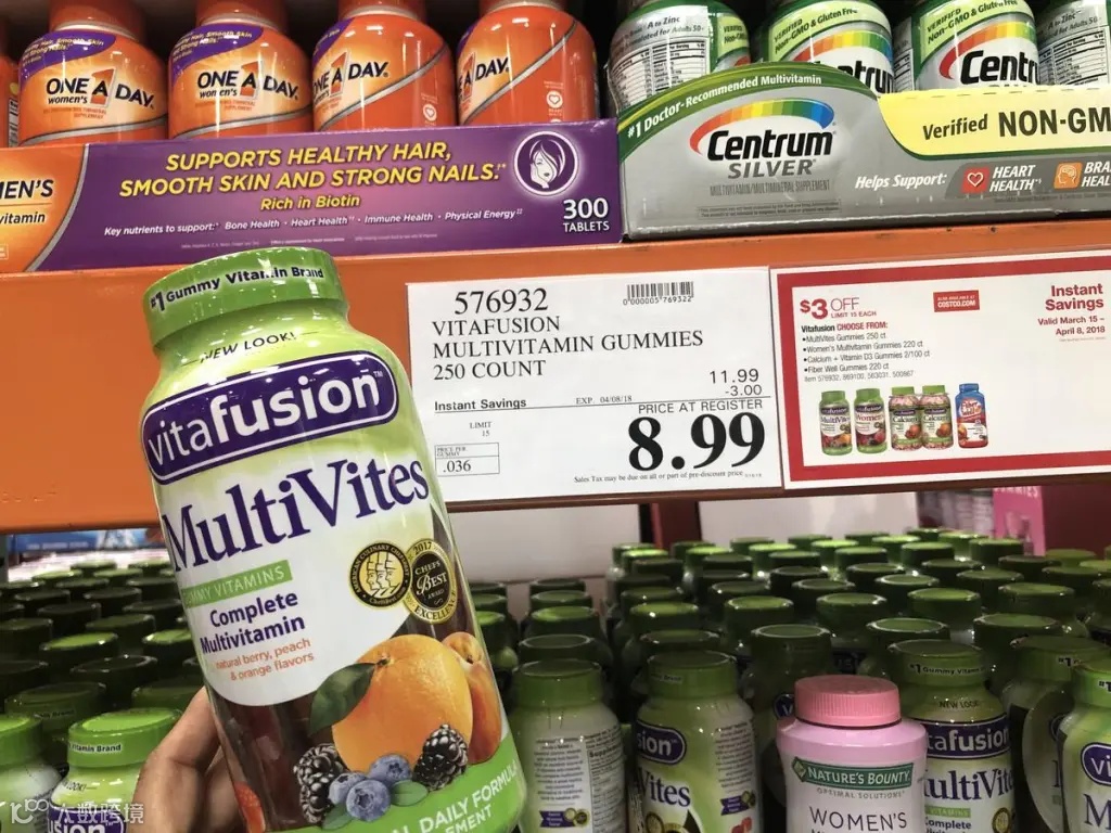 此外,Costco还热销多种维生素与保健品,包括维生素D、蔓越莓胶囊(Cranberry)、成人复合维生素软糖(MultiVites)、益生菌(Complete Probiotic)和褪黑素(Melatonin)等,均值得推荐[k]