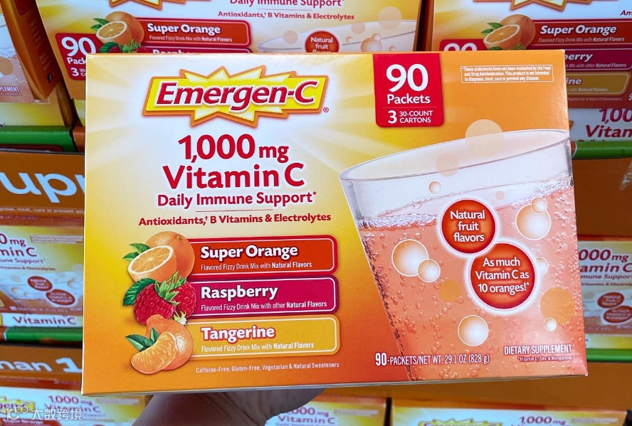 Emergen-C维生素C冲剂具有抗氧化、提升免疫力、预防感冒、促进胶原蛋白合成等作用,尤其适合冬季增强体质[k]