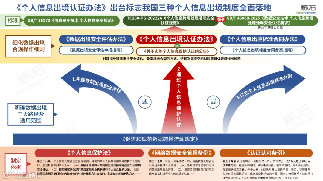 2025年10月14日,国家互联网信息办公室、国家市场监督管理总局联合公布了《个人信息出境认证办法》(以下简称《办法》)。随着全球数字经济飞速发展,数据跨境流动成为推动数据要素全球配置、开展高水平国际合作竞争的关键。《个人信息保护法》规定,按照国家网信部门的规定经专业机构进行个人信息保护认证是向境外提供个人信息的法定途径之一。为落实法律规定要求,2022年11月,国家市场监督管理总局、国家互联网信息办公室公布了规范性文件《关于实施个人信息保护认证的公告》。在此基础上,制定了该《办法》,完善我国个人信息跨境流动管理制度,有利于保护个人信息权益,促进个人信息合规利用,为数字经济高质量发展提供法治保障。