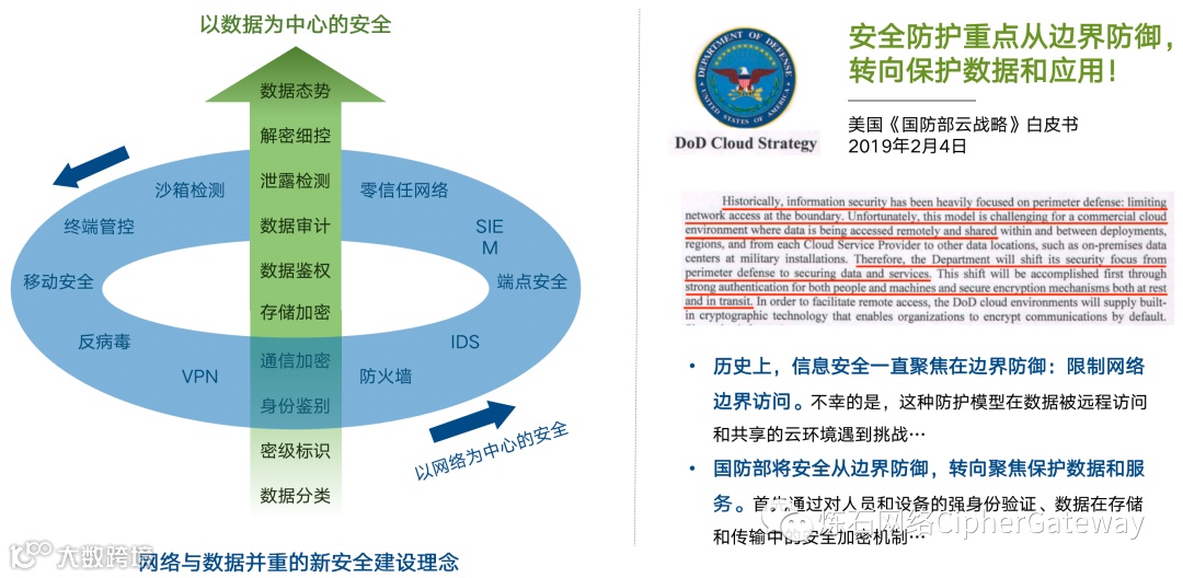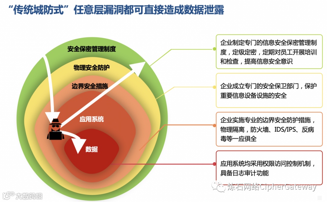 业务上云后,企业面临最突出安全问题是安全边界被打破。大量的数据异地存储和使用,现有的多数安全手段更加注重于网络边界防护和访问控制。但云上存储的数据可能存在明文数据泄露的风险。企业应该考虑利用加密、去标识化技术为云上高速流转的数据重构防护边界。