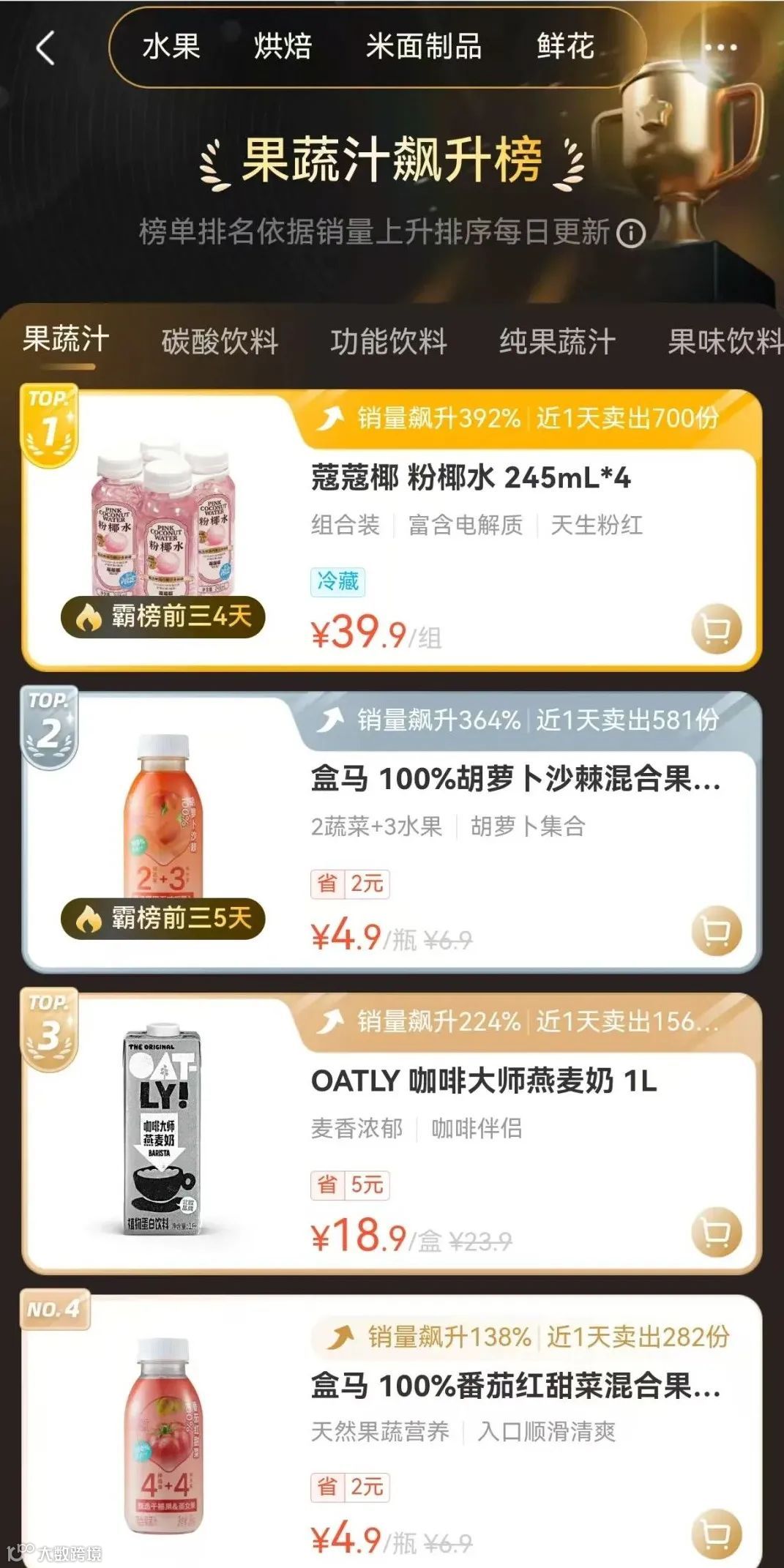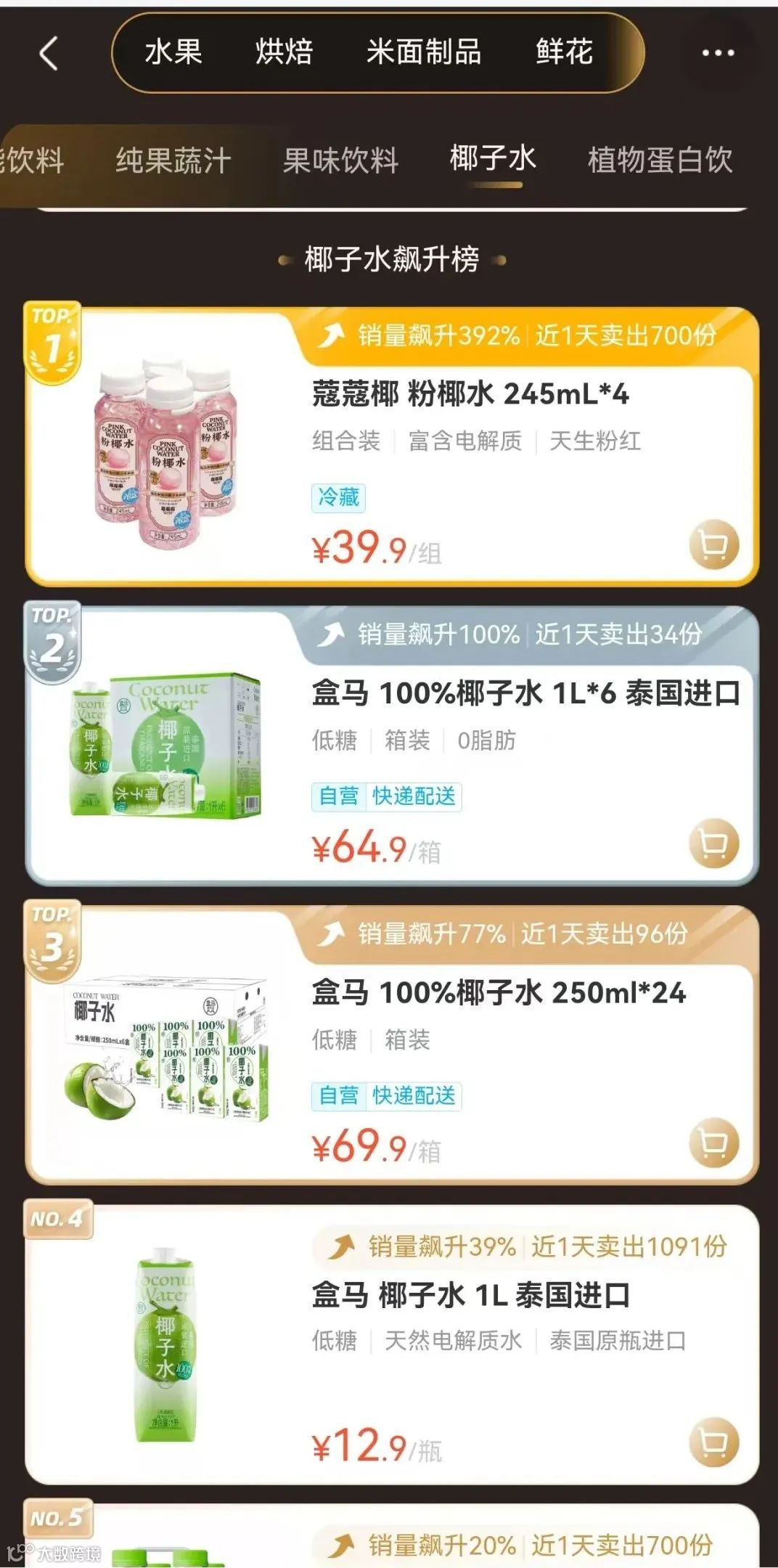 蔻蔻椰粉椰水登顶果蔬汁热销榜第一[1]。