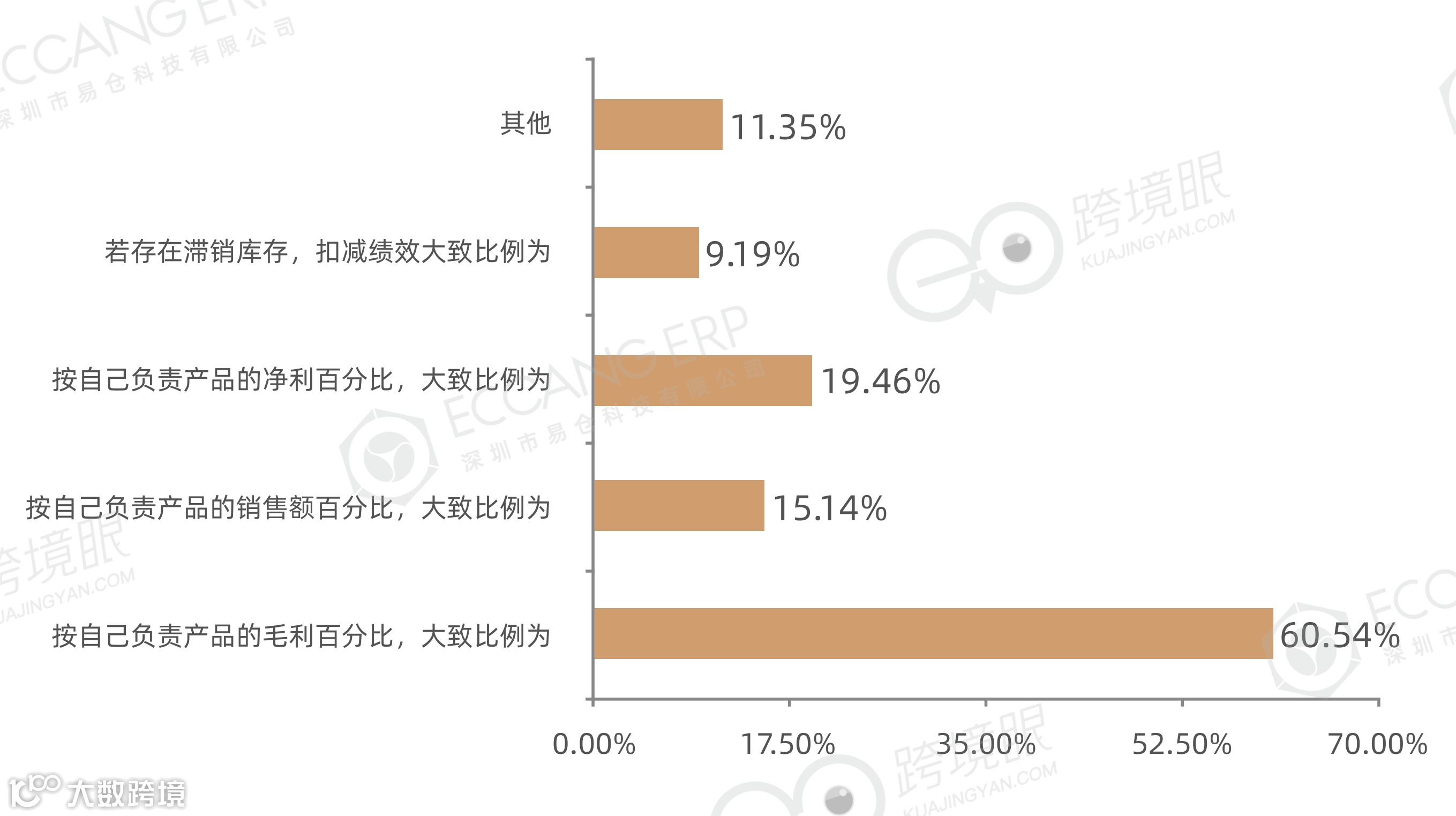 而按照净利百分比来进行提成的企业数量也不少,占比19.46%,仅次于按毛利百分比提成。反映出当前跨境电商企业从更关注销售额转为更关注利润。如下图: