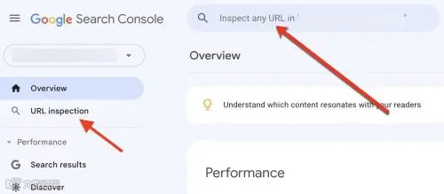 Search Console 的网址检查工具位于每个页面的顶部,并通过左侧菜单项。