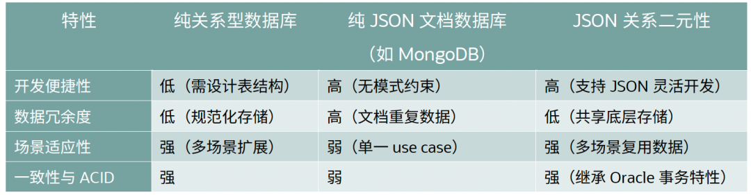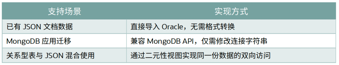 在不同应用场景下 Oracle 对 JSON 的全面支持: