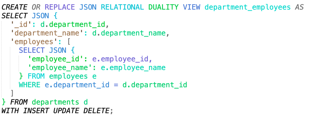 一个创建JSON关系二元性视图的例子: