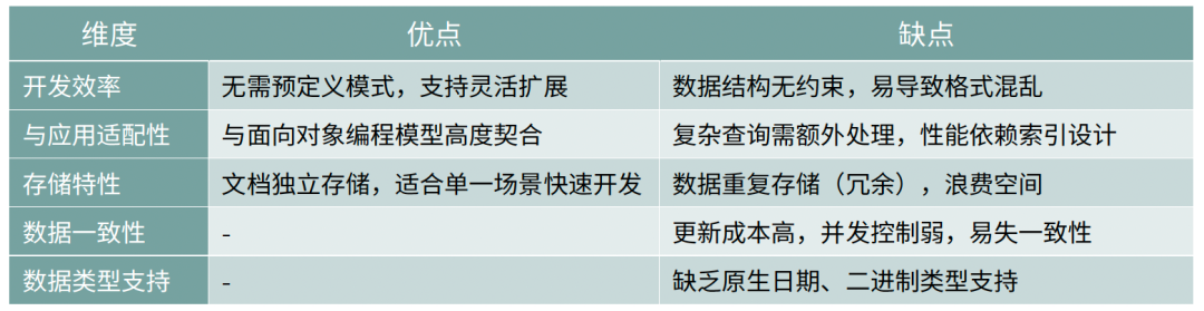 MongoDB通过JSON存储文档的优缺点对比: