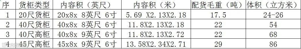 附:各类集装箱内容积、毛重及体积对比图