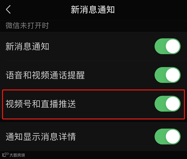 (1)新增“视频号和直播”推送开关。用户可在“我”-“设置”-“新消息通知”中开启或关闭相关推送[k]。