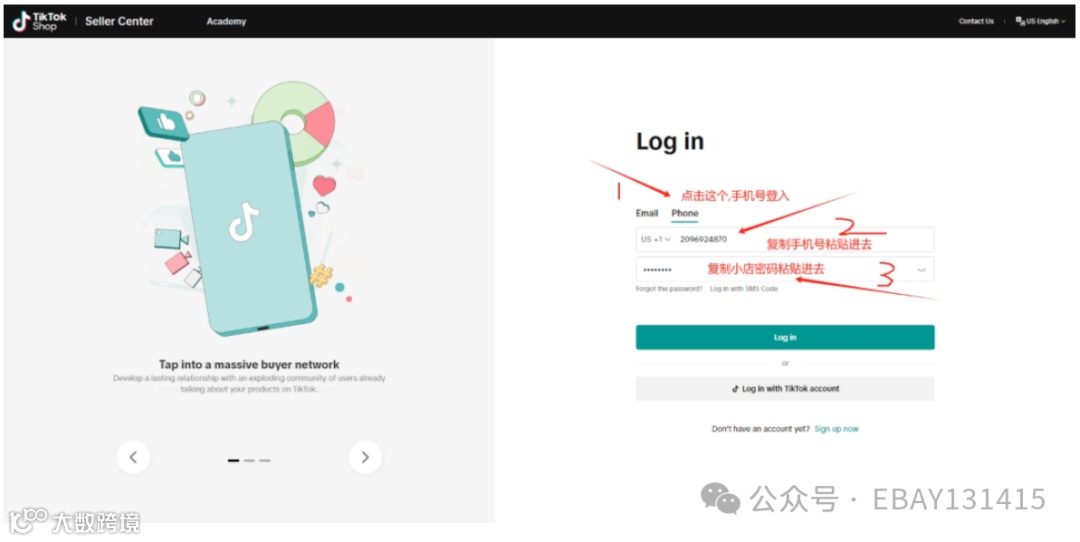访问官方登录页面:https://seller-us-accounts.tiktok.com/account/login[k]。