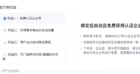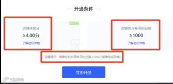 官方抖音账号须完成企业蓝V认证,且认证所用营业执照须与抖音小店一致[k]。实名认证身份证不必为法人所有,此为开店关键点之一[k]。因通过抖音小店后台可免费完成蓝V首次认证,故官方账号可0粉丝开通商品橱窗[k]。第二年续费需缴纳120元[k]。