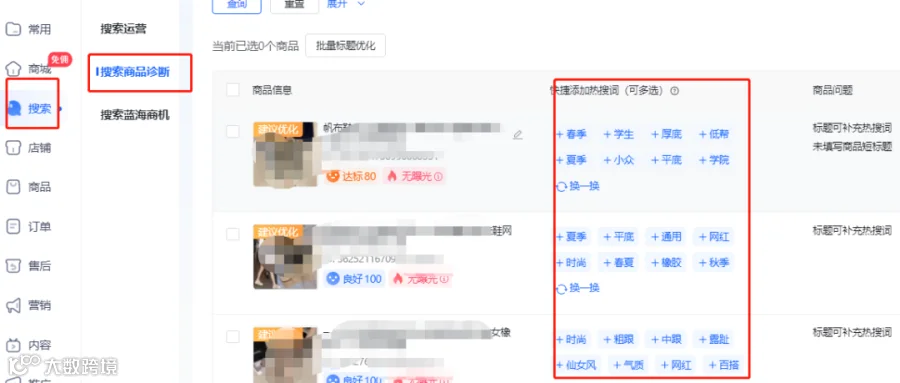 利用巨量千川搜索工具,提取高搜索指数关键词构建新标题。或进入抖音小店后台“搜索-商品诊断”功能,根据平台推荐添加热搜词优化标题结构,提升搜索权重[k]。