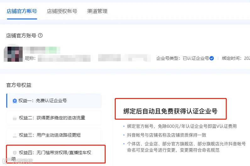 企业店、个体店:可绑定1个官方账号和最多3个授权账号,总计4个。
