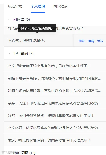 在飞鸽机器人首页切换至“极速版”,开启智能辅助接待与自动回复。同时在“快捷短语”中预设常见问题回复,如发货地、发货时间、物流查询等,提升响应速度和服务体验分[k]。