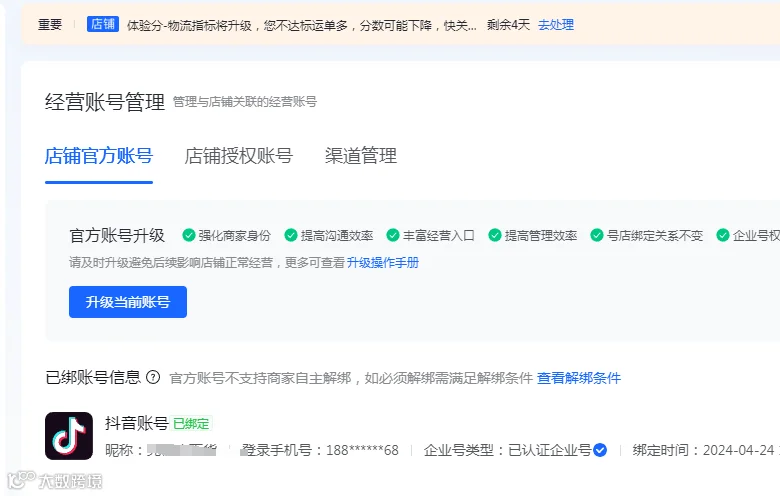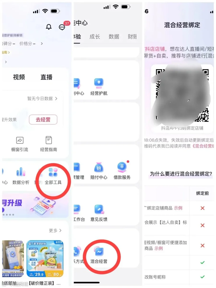 如计划通过短视频或直播带货,可在“经营账号管理”中绑定抖音账号。若需同时销售自有商品与精选联盟商品,建议在抖音APP内通过“混合经营”功能绑定,实现双渠道带货[k]。