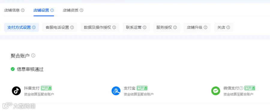 进入“店铺设置”,开通全部四项支付方式,保障用户顺利下单付款[k]。