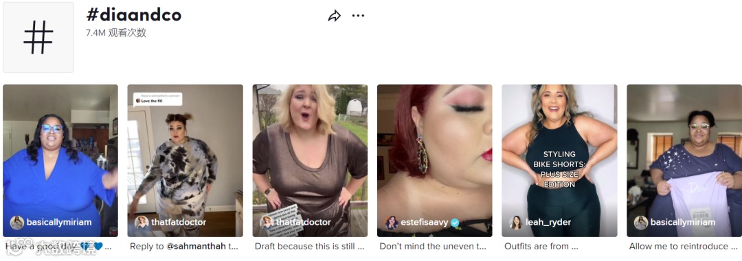 TikTok上关于“#diaandco”话题,已拥有740万次观看,Dia&Co用心做大码服装,让海外许多胖女孩重拾自信与时尚,缓解身材焦虑,包容性的品牌理念也赢得了无数消费者的信任。