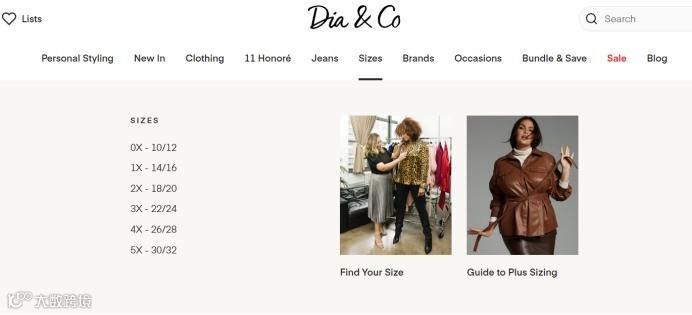 与其他服装品牌不同的是Dia&Co专门设置了大码女装订阅服务,精准测量女性自身尺码,寻求为大码女性量身定做出更合适的时尚造型。