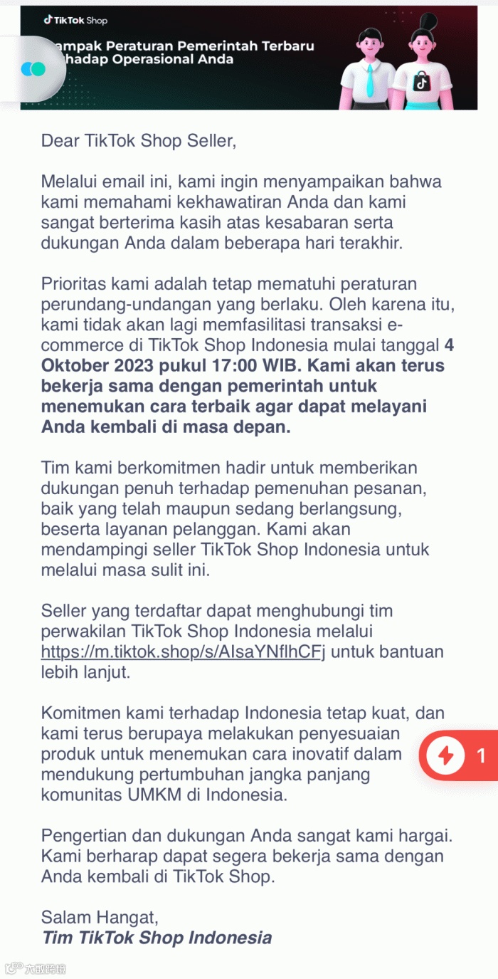 此前,印尼官方颁布新规,限制在社交媒体上进行电商交易。虽然新规没有明确点名哪个社媒平台,但在当地热门的TikTok首当其冲。