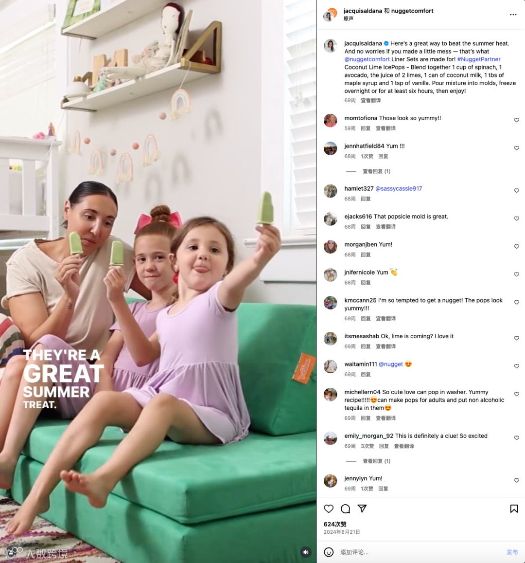 Nugget的成功,很难用“运气”解释。它并没有投放昂贵的电视广告,也没有铺设庞大的零售网络,而是通过极具创意的社交媒体运营和用户共创策略,将一张沙发变成了一场亲子文化现象。