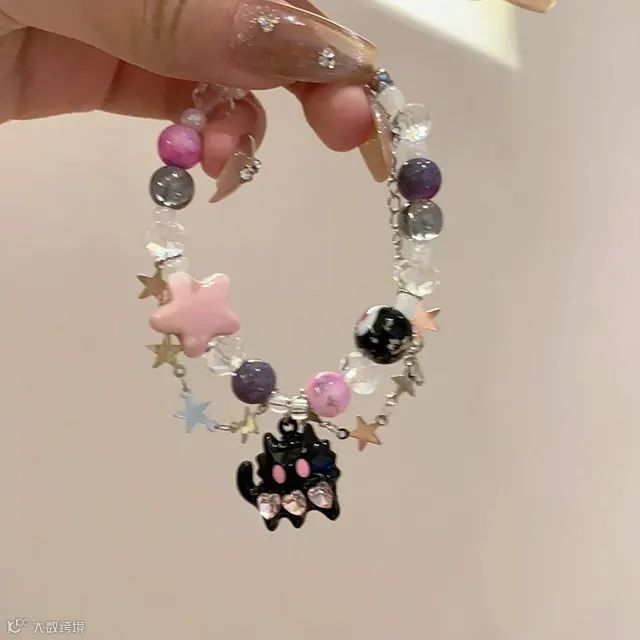 New Black Cat Heart Rhinestone Pentagram Star Beads Bracelet for Women Aesthetic Sweet Cool Trendy Jewelry Korean Fashion Gift