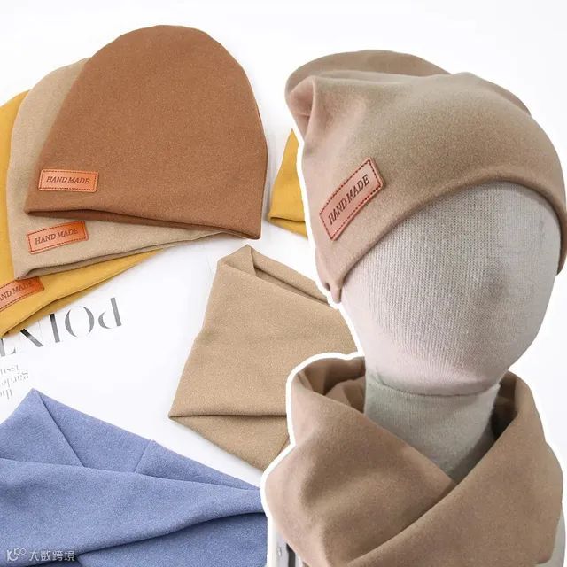 2Pcs/Lot Faux Cashmere Baby Turban Hats Scarf Set Newborn Kids Leather Stick Winter Double Layers Caps Bonnets Fashion Headwraps