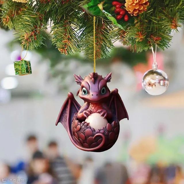 2023 Xmas Ornaments Acrylic Baby Dragon Egg Keychains Pendant Christmas Tree Hanging Decorations Keychain Ornament For Car Tree