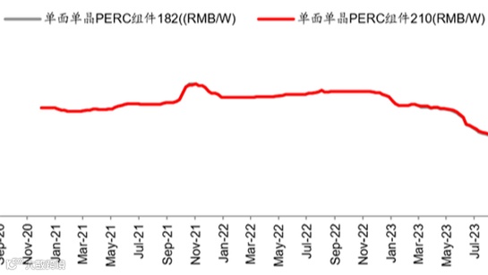 最后是组件,跌了快一年,近期有止跌迹象。业内人士称,这不代表价格下降趋势结束。据光伏們报道,9月25日,国电内蒙东胜热电197MW组件采购中,P型545Wp和550Wp组件的最新价格已经下降至每瓦1.107元。