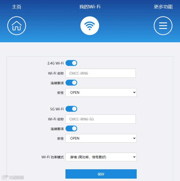 2、在从FTTR web界面中,在我的Wi-Fi界面中,将2.4G Wi-Fi和5G Wi-Fi的按钮关闭即可。