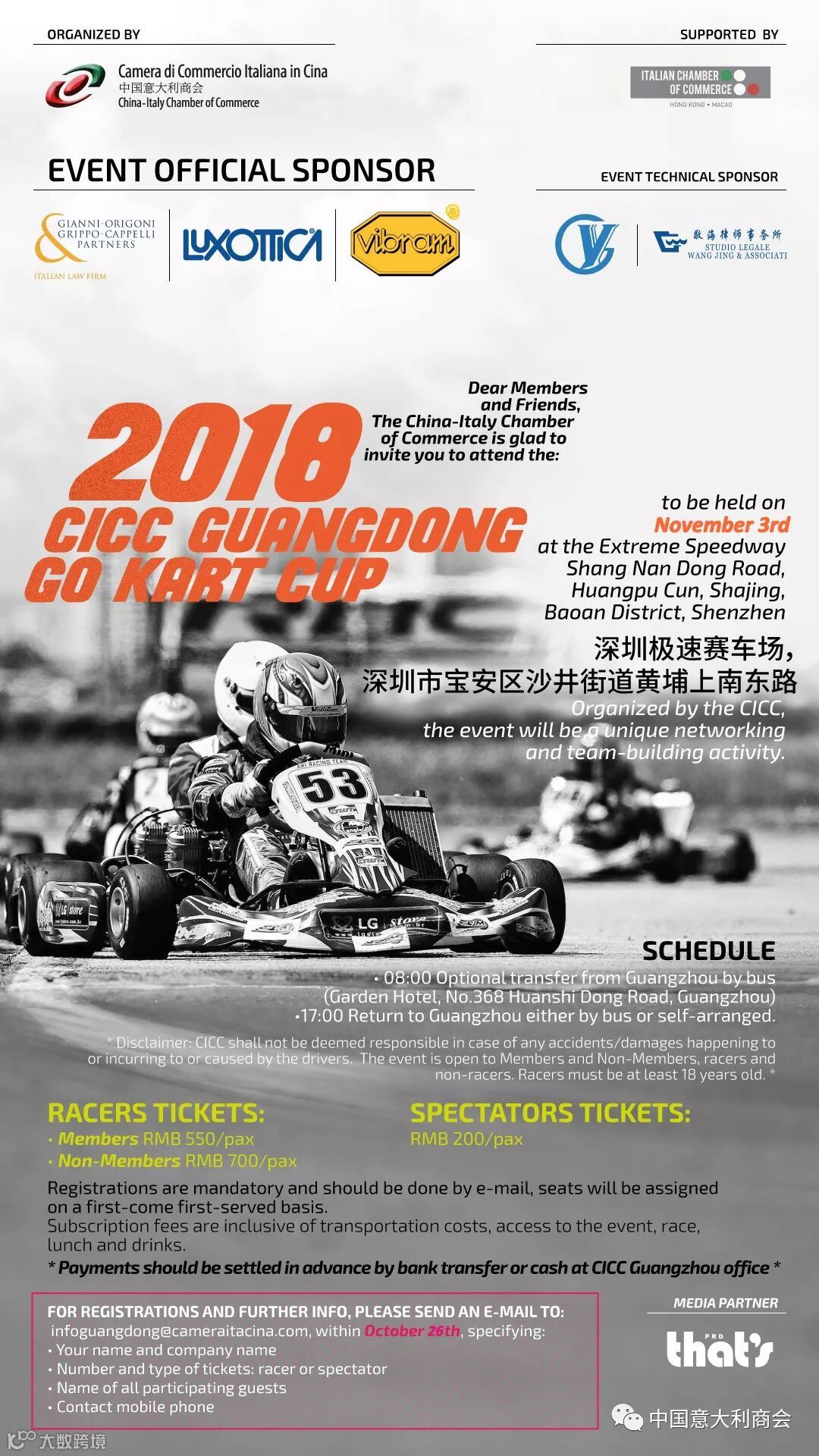 关于登记注册与更多信息,请在10月26日之内发送电子邮件至infoguangdong@cameraitacina.com,指明: