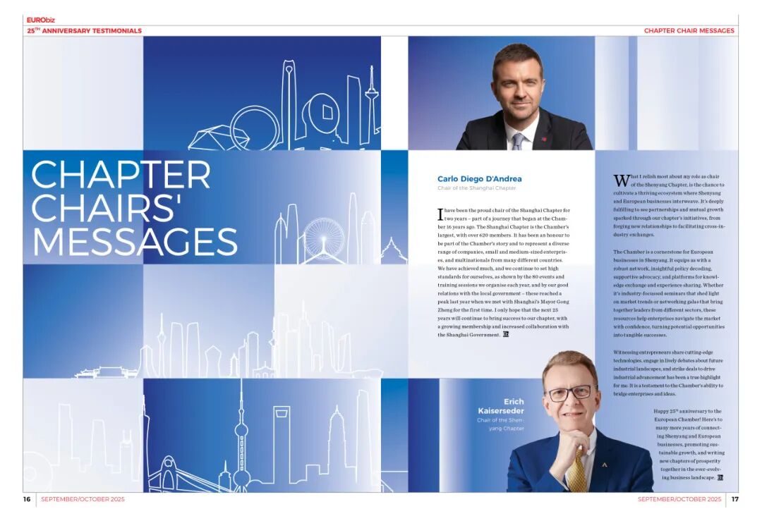 This special edition of EURObiz celebrates the European Chamber’s 25th anniversary and includes interviews with some of the people that have played a significant role in the Chamber’s development.