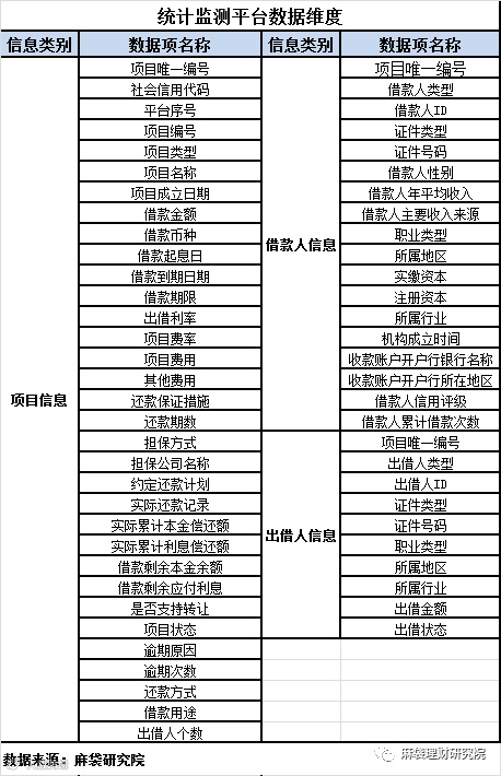 中国互金协会统计监测系统开始于2017年初,涉及范围不仅包括借款人基本信息(包括姓名、身份证号码、借款金额、借款期限、借款费率、项目费用、其他费用(如逾期罚息)、实际还款记录、累计偿还本金及利息、剩余本金/利息余额),而且收集了出借人的基本信息,这是芝麻信用、腾讯征信等所不具有的。