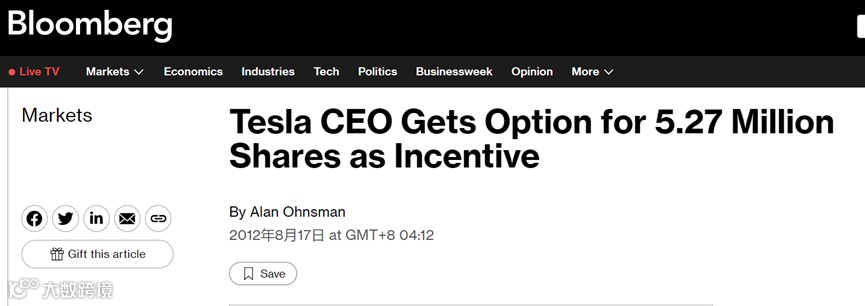 △图:马斯克2012股权激励