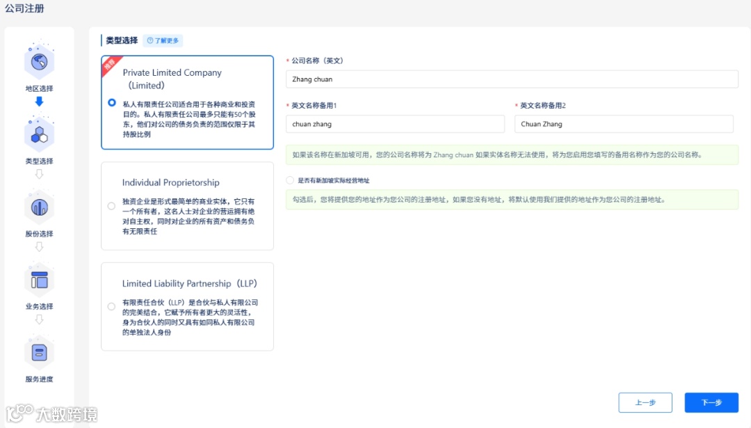 公司名称建议带行业词(如Tech、Trade、Global)提升专业感 -
