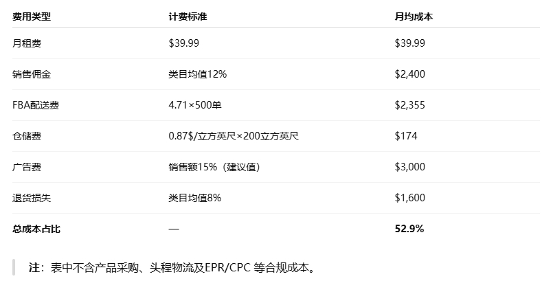 2025年亚马逊开店总费用(北美站月销2万美金示例)
