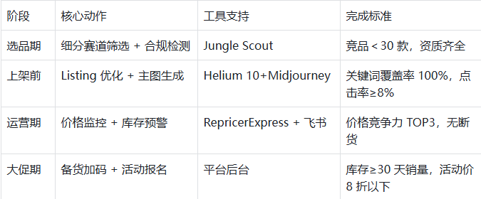 善用 AI 工具:用 AI 生成高搜词 Listing、360° 展示视频,设置指标预警(如竞品降价超 5% 即时提醒)。