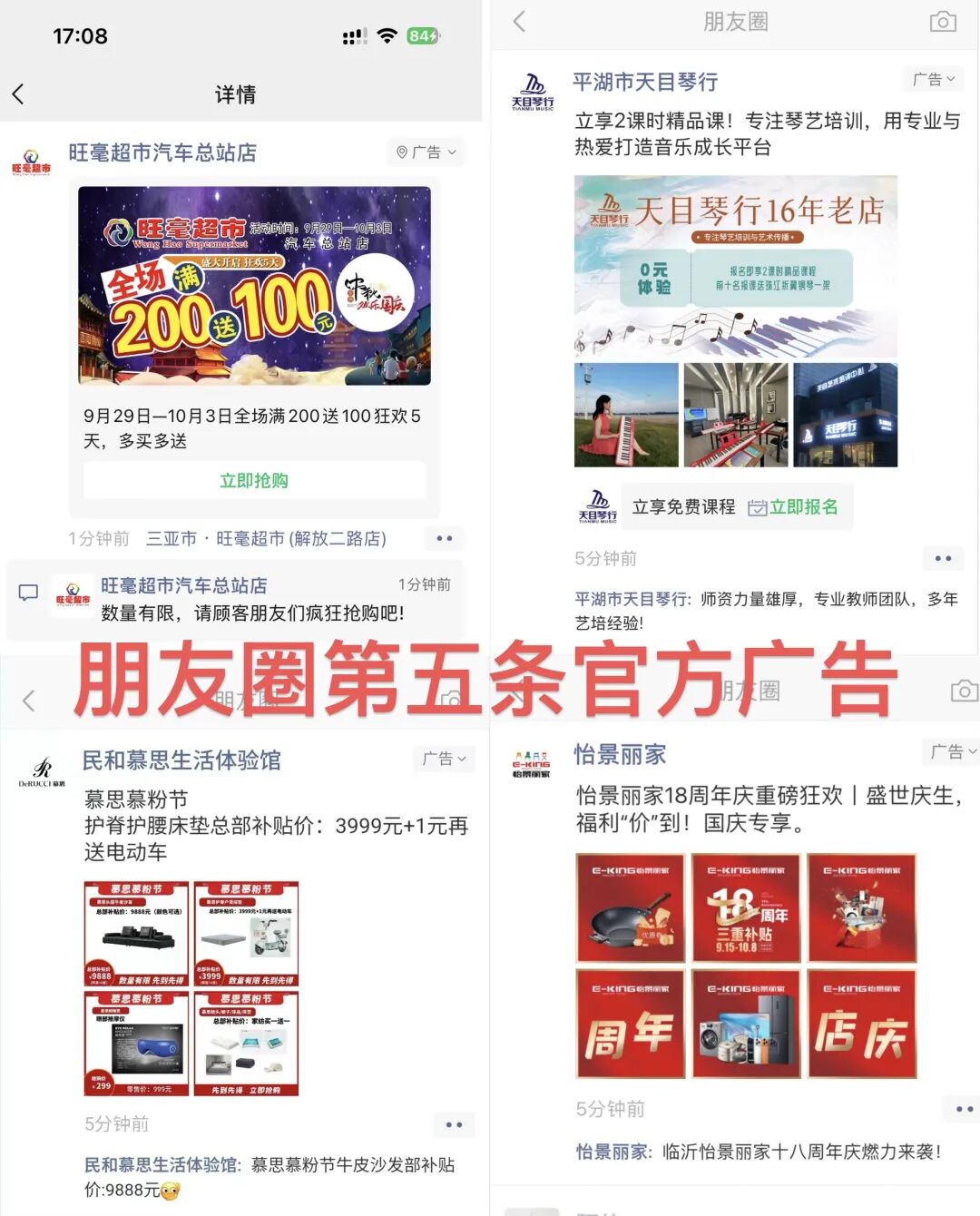 这种广告是非好友强行植入的,可以设置投放区域筛选用户人群画像:年龄、性别、学历、兴趣爱好、育儿状态、地理位置进行精准定向推送,比如,母婴产品商家能把广告推送给年轻妈妈群体,健身机构可以定向展示给热衷运动的人群,让广告能精准“找到”对产品或服务真正感兴趣的潜在客户。