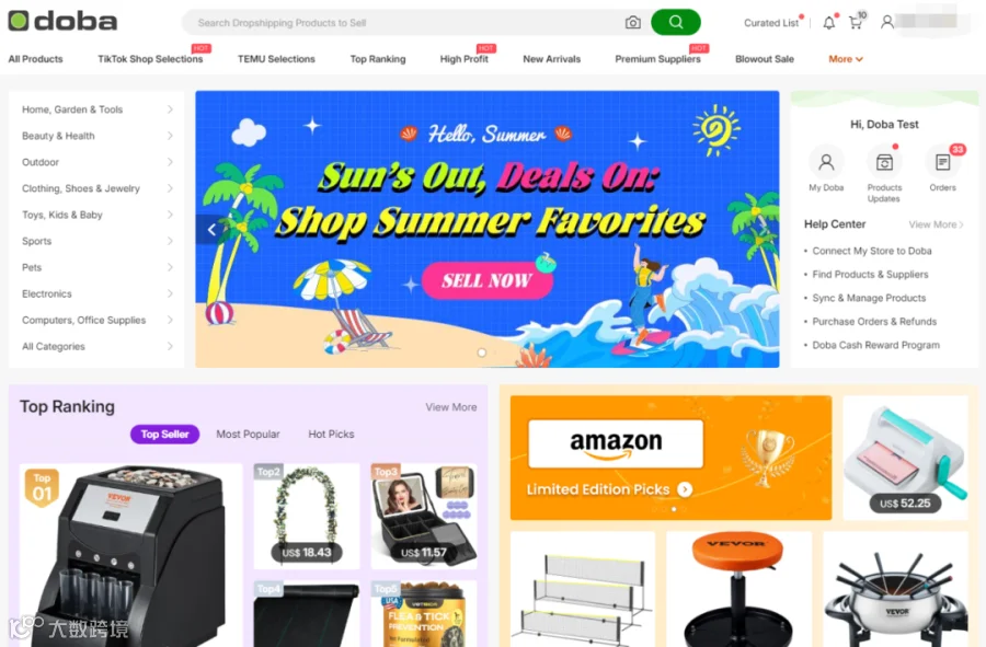 Doba是美国本土现货分销平台,自2002年运营至今,拥有成熟供应链体系,提供100万+美国本土现货商品,覆盖家居、美妆个护、户外、运动健身等全品类,已对接Amazon、eBay、TikTok、Temu等主流跨境平台,帮助卖家解决选品难、资金压力大、海外仓门槛高、售后复杂等问题,支持先出单后付款,实现0资金压力创业[k]。